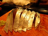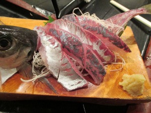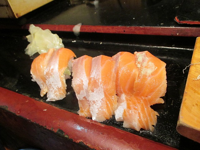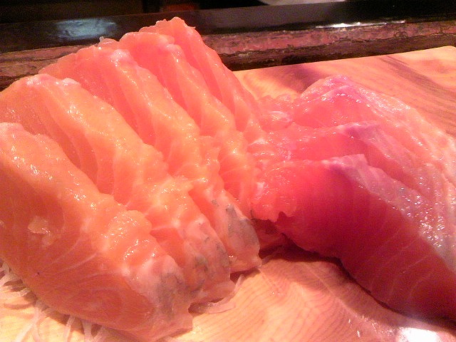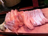 | 川漁師の協力で、神通川でとれた、サクラマスが提供されることもあります。刺身、握り、かまの焼き物。 | ||||