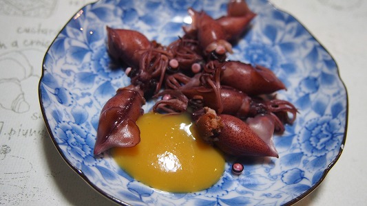 ホタルイカが好調です。結構とれる日があります。湯がいたものが美味しいです。そこで、かけるのは酢味噌です。からしの入った酢味噌がよいです。5月までは楽しめる富山の風物です。
